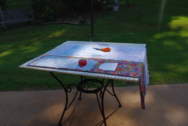 ... I pulled my cutting board and fabric out onto the patio and cut out my skirt there.